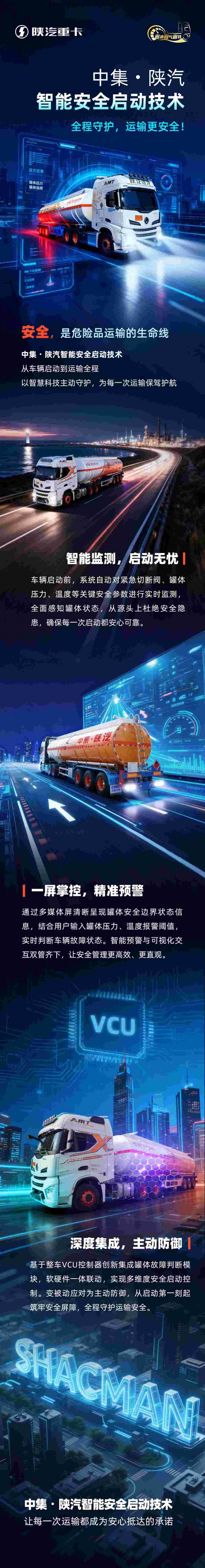 安全,是危险品运输的生命线,中集·陕汽智能安全启动技术,从车辆启动到运输全程,以智慧科技主动守护,为每一次运输保驾护航。