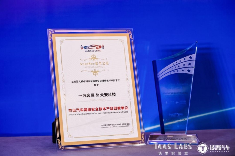 ▲一汽奔腾蝉联 AutoSec 年度“杰出汽车网络安全技术产品创新单位”称号