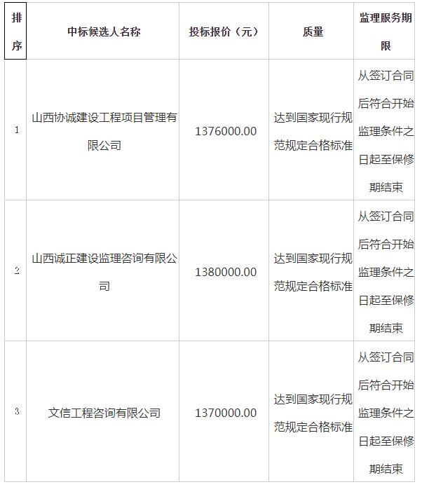 据公示内容显示,经评标,山西协诚建设工程项目管理有限公司(报价 137.6 万元)、山西诚正建设监理咨询有限公司(138 万元)、文信工程咨询有限公司(137 万元)分获前三,均承诺达标质量与对应监理服务期限,且各有项目总监及资质。异议可通过指定平台提出,公示同步在两省市级平台发布,监督部门为阳泉市郊区能源局并附联系方式。