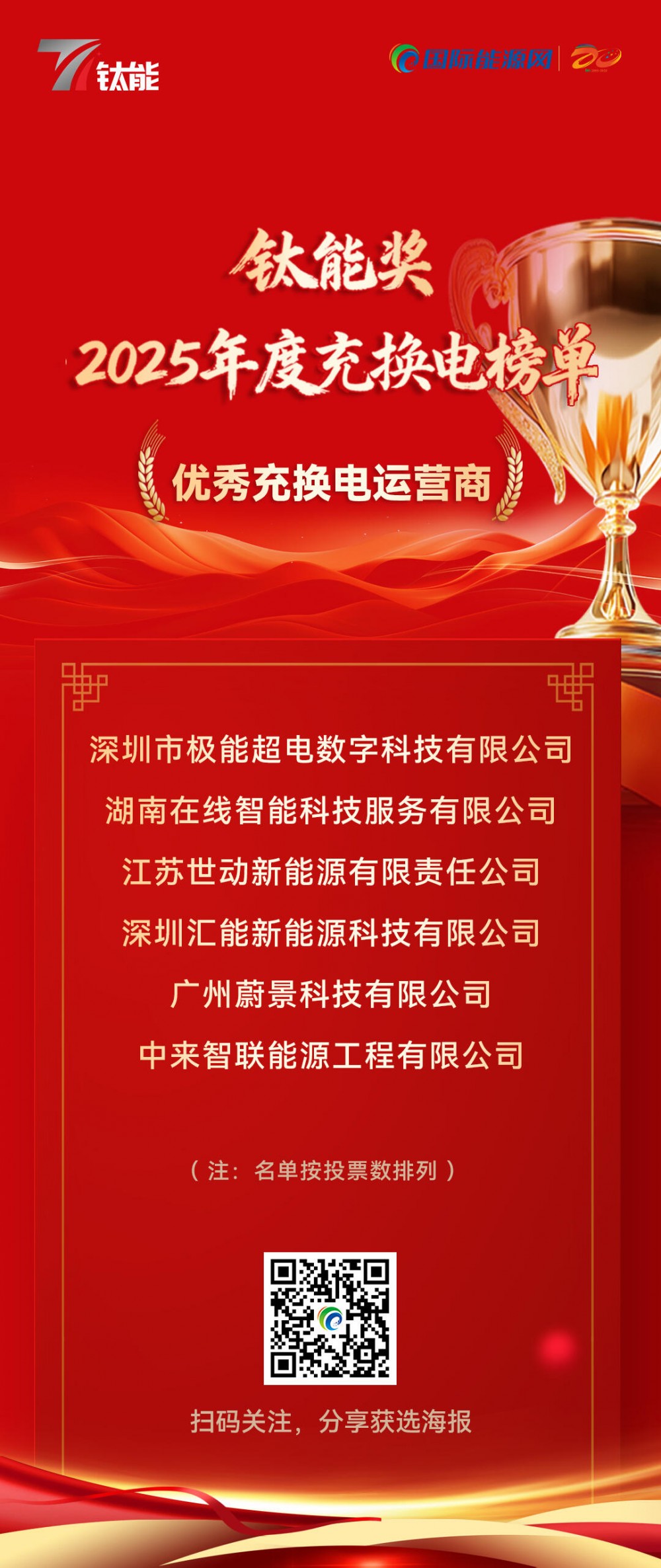 荣获2025年度优秀重卡超充桩供应商的企业是: