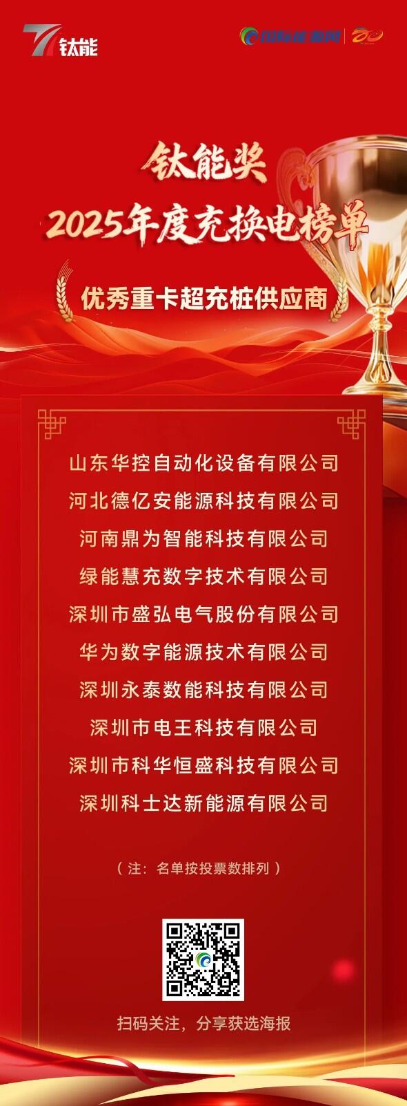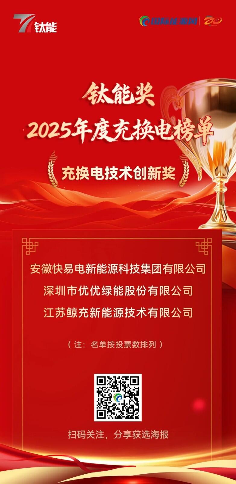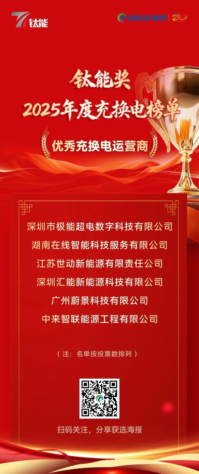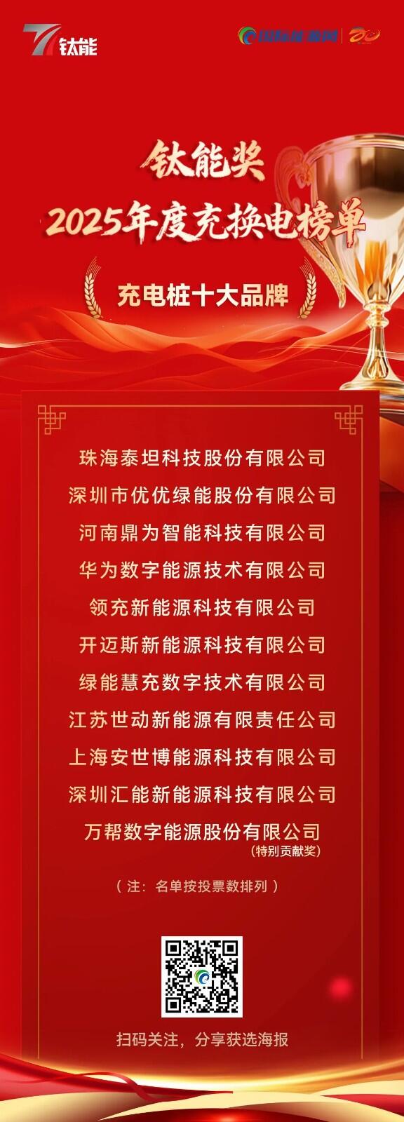 2025年度充换电行业6大奖项已揭晓,榜单如下: