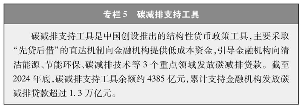 完善支持绿色低碳发展的经济政策。中国建立健全支持绿色低碳发展的财税价格政策。在政府采购中推行强制采购、优先采购节能环保产品,目前政府采购节能环保产品规模占同类产品采购规模的比例超过85%。完善绿色电价政策,优化绿色投资政策。健全绿色金融标准体系,实施碳减排支持工具等结构性货币政策工具。完善气候投融资政策体系,部署开展23个气候投融资地方试点,指导地方建设气候投融资项目库。截至2024年底,中国本外币绿色贷款余额36.6万亿元,投向具有碳减排效益的贷款占比接近七成。2024年,绿色保险业务保费收入达3331.49亿元;绿色债券发行量为6814.32亿元,是2020年的2.5倍。